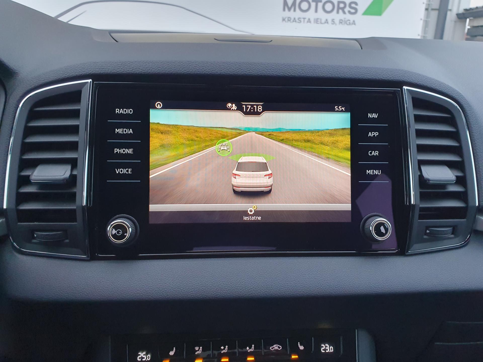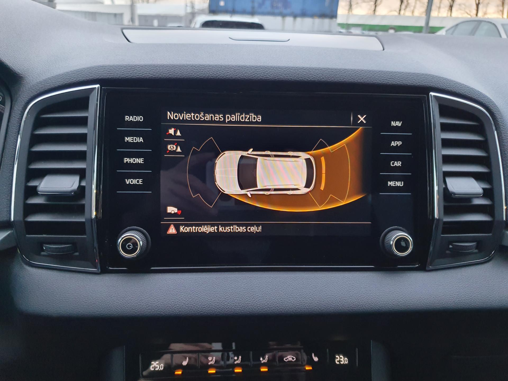 Priekšējie un aizmugurējie stāvvietā novietošanas sensori vizuālu informāciju radio iekārtas displejā