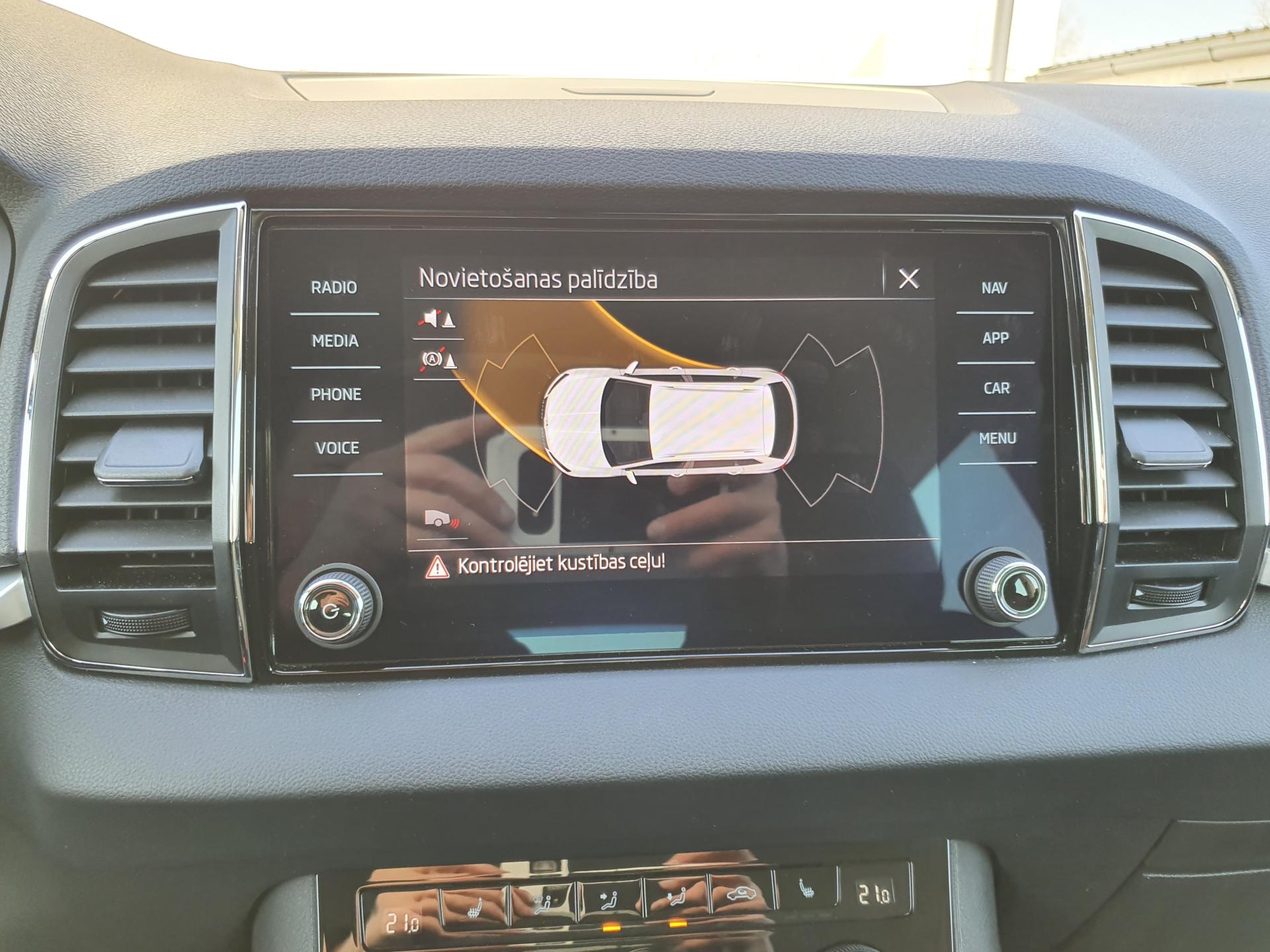 Priekšējie un aizmugurējie stāvvietā novietošanas sensori ar vizuālu informāciju radio iekārtas displejā