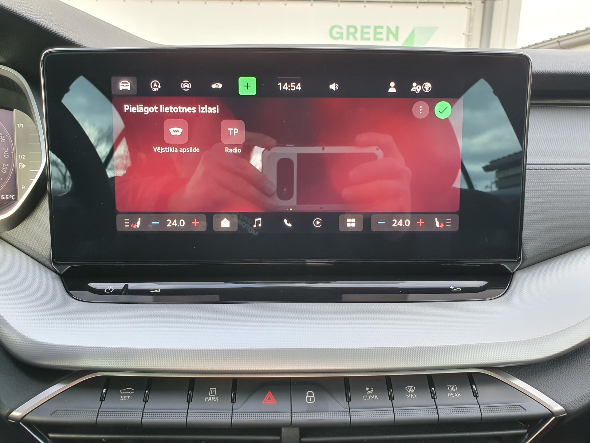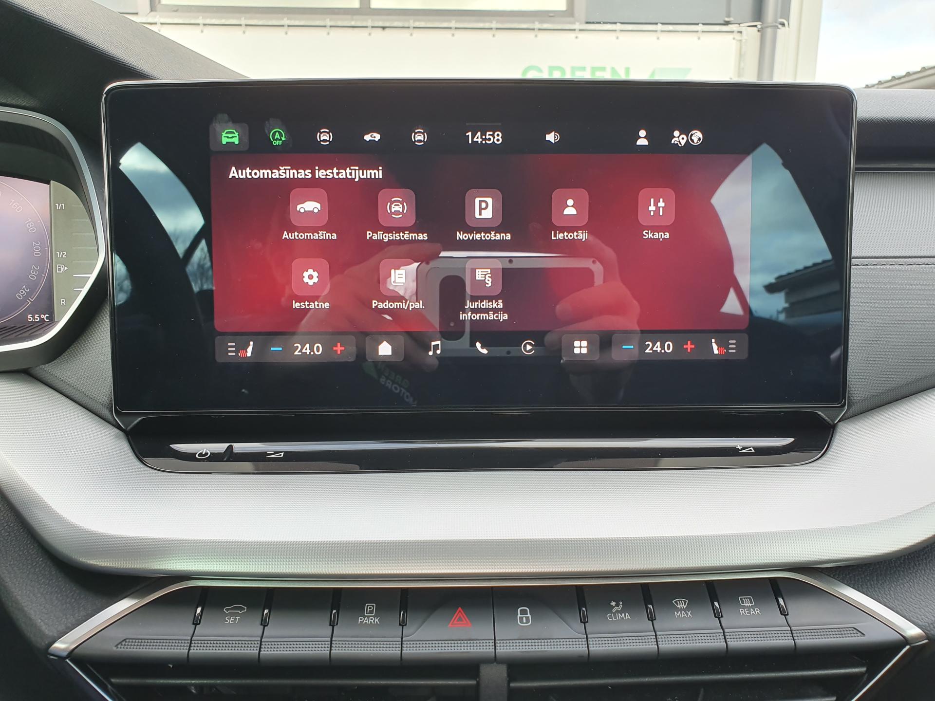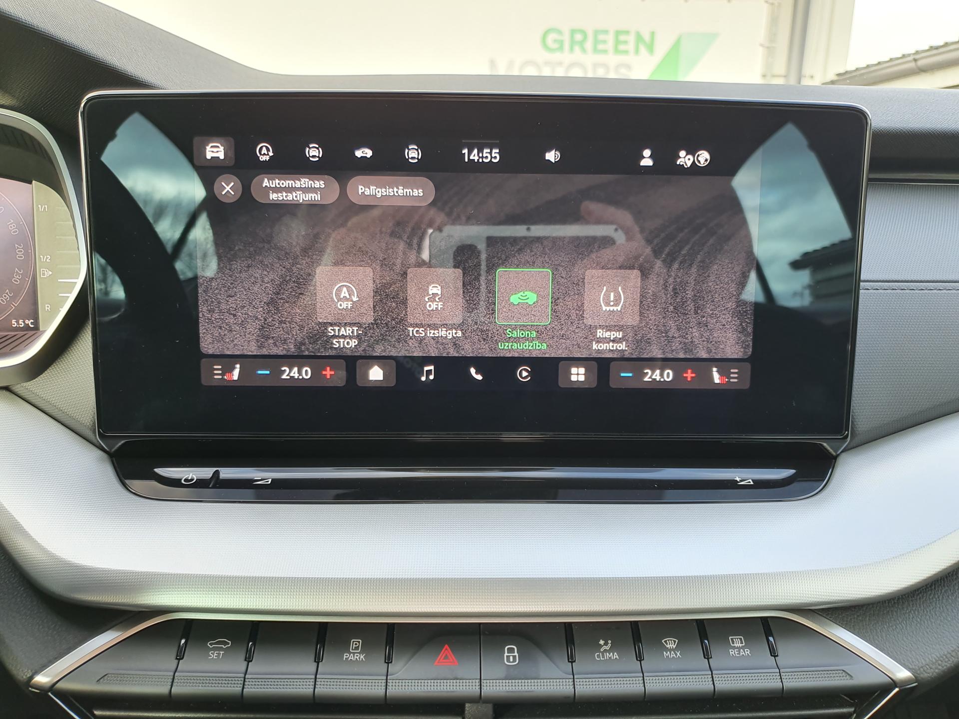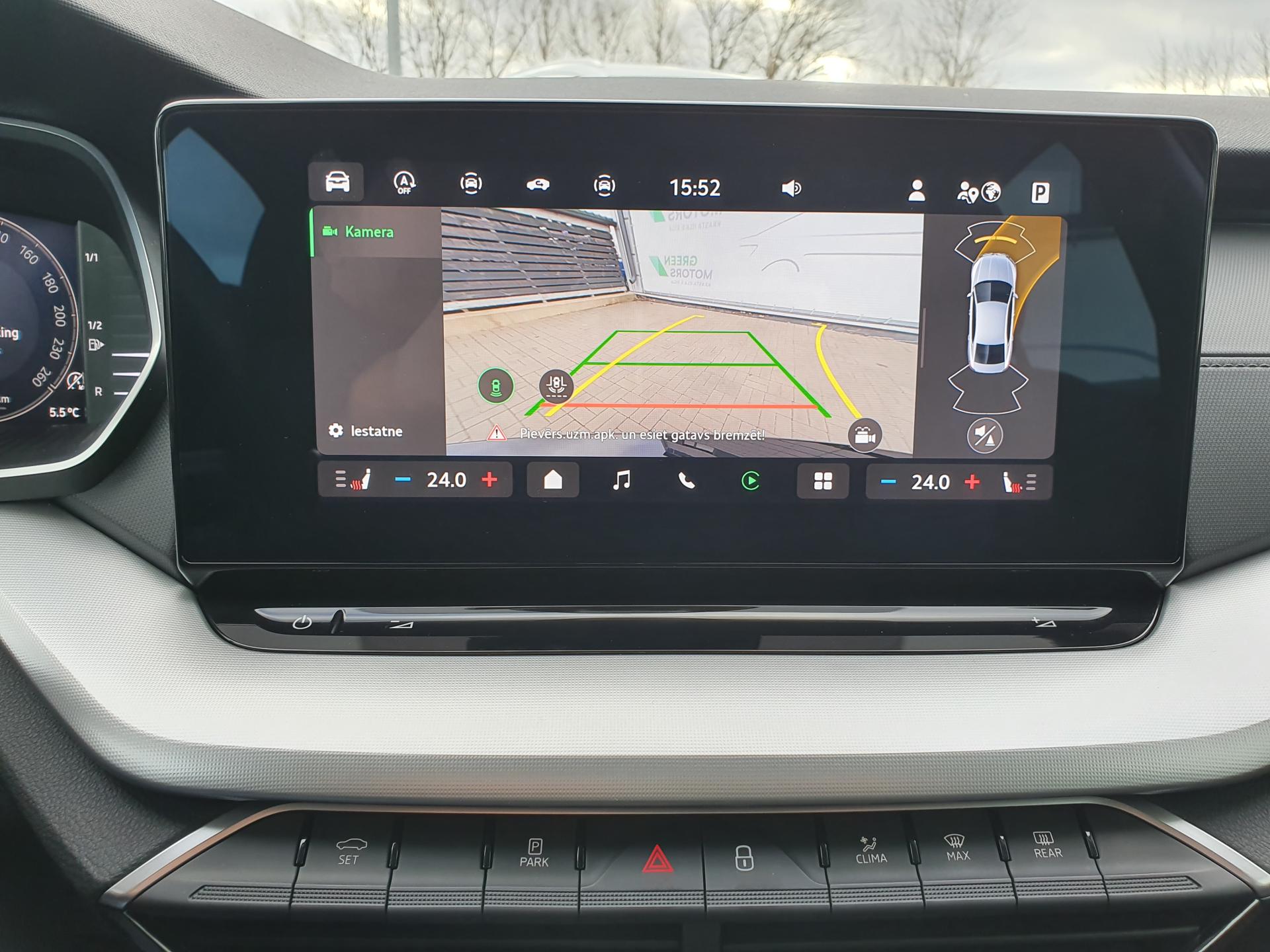 - Atpakaļgaitas kamera un parkošanās sensori priekšā un aizmugurē