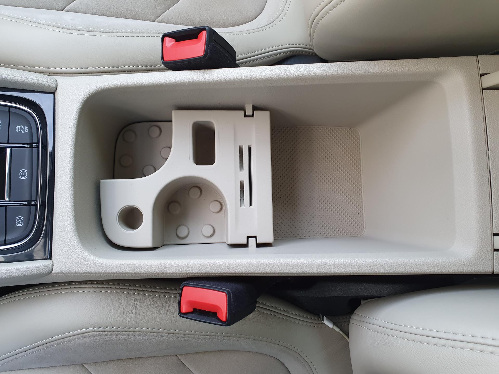 Regulējams elkoņu balsts starp priekšējiem sēdekļiem ar sīklietu novietni